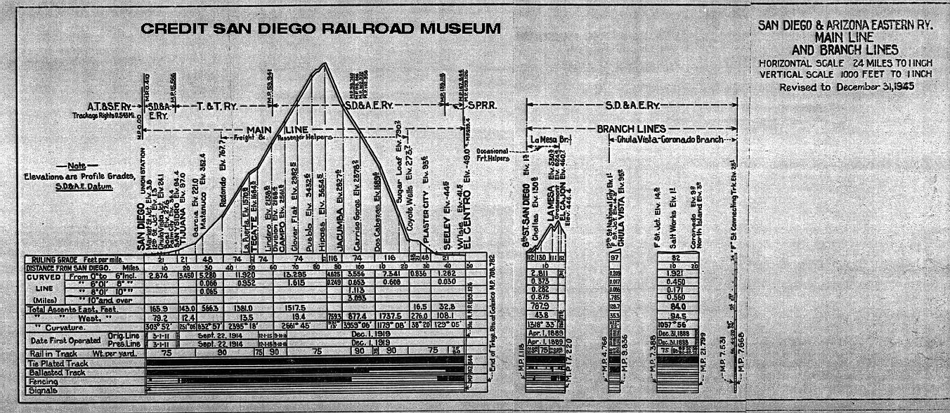 Profile of Main and Branch Lines of the San Diego and Arizona, Dec. 31, 1945 |